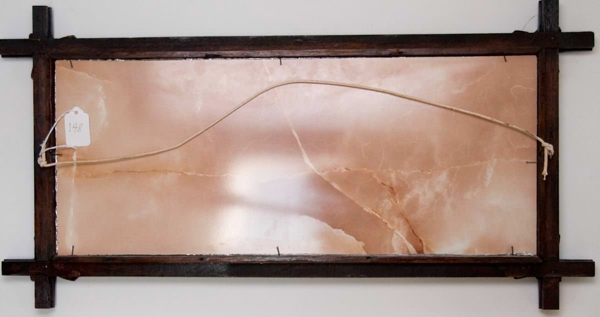 The motto was backed with foil and the frame backed with a piece of scrap formica or left over sheeting.